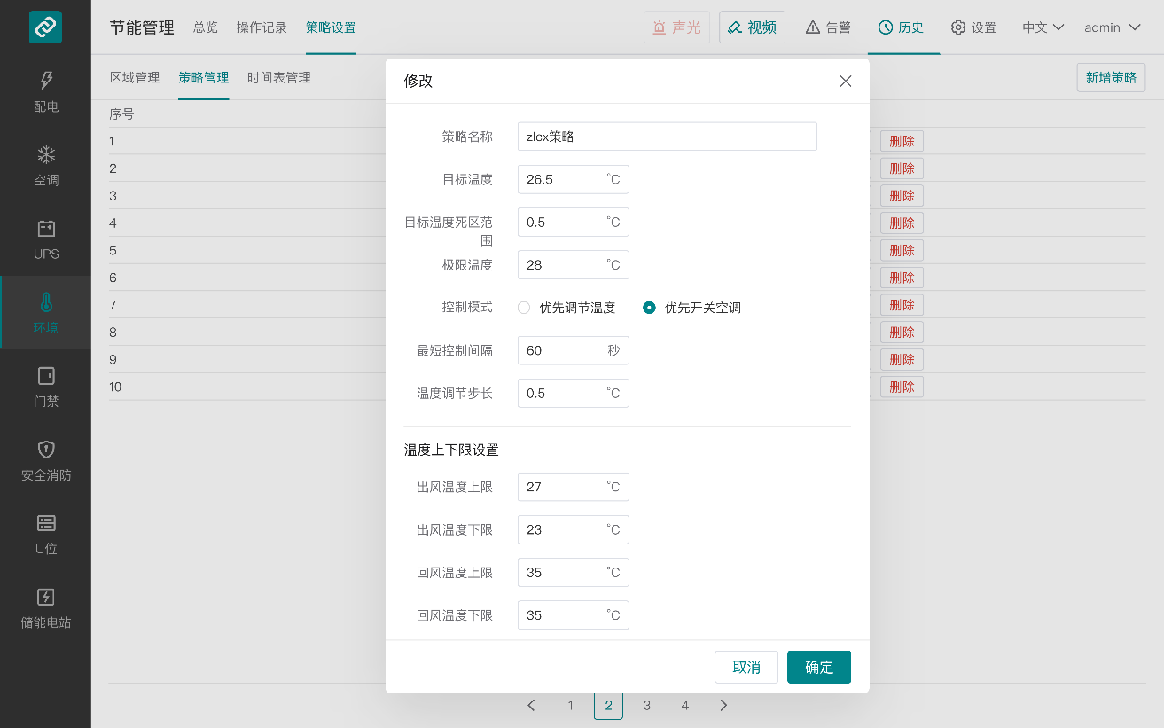 (1)空調(diào)用電的優(yōu)化,在滿足機(jī)房熱負(fù)荷需求、環(huán)境溫度要求的前提下,通過自動調(diào)節(jié)空調(diào)出回風(fēng)溫度設(shè)定、運行數(shù)量來實現(xiàn)空調(diào)用電的最優(yōu)化。