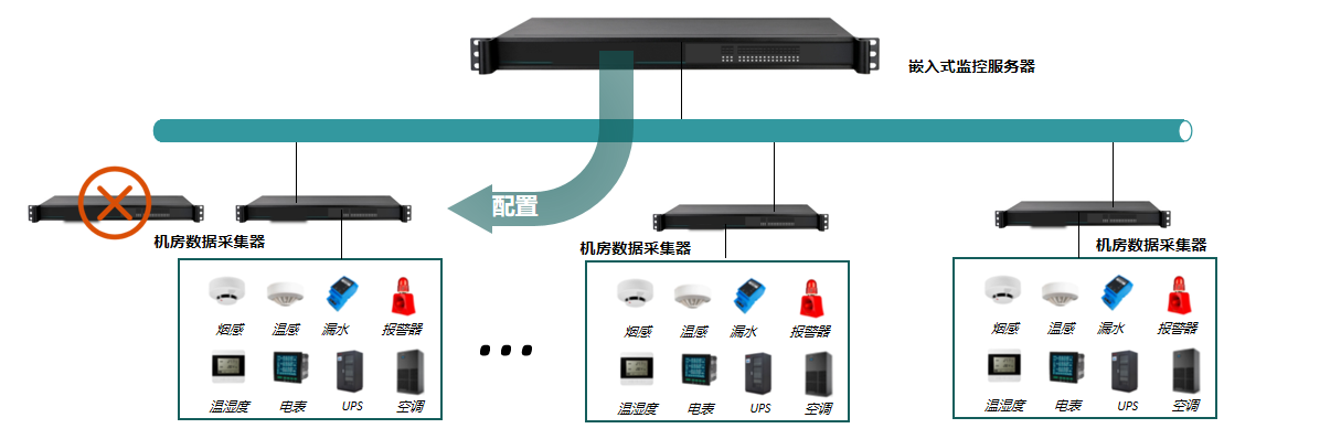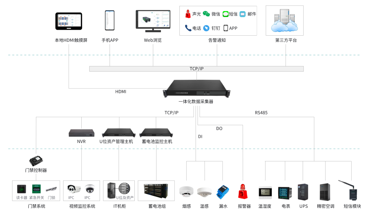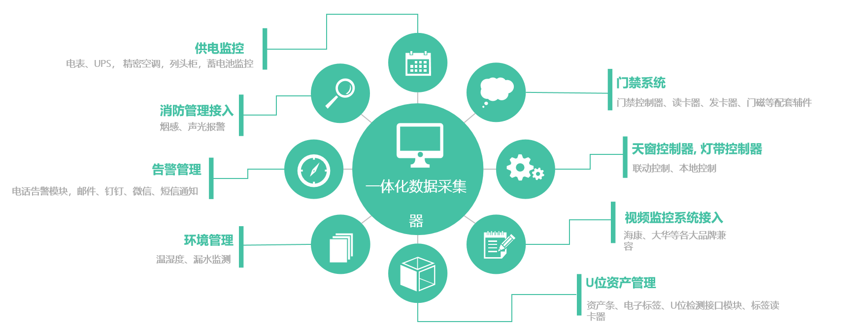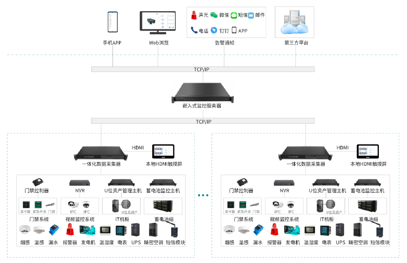 該系統(tǒng)由:嵌入式監(jiān)控服務(wù)器、一體化數(shù)據(jù)采集器、HDM觸摸屏、漏水監(jiān)測(cè)系統(tǒng)、天窗聯(lián)動(dòng)控制器、蓄電池監(jiān)控系統(tǒng)、門禁控制系統(tǒng)、U位資產(chǎn)管理系統(tǒng)、溫濕度監(jiān)控系統(tǒng)組成
